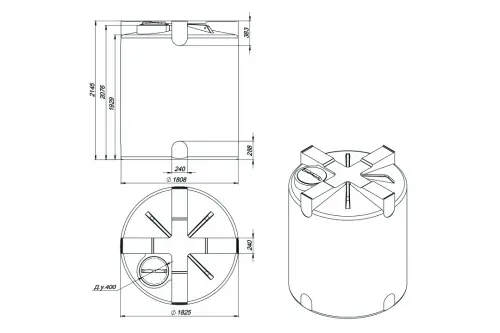 Крупногабаритная вертикальная бочка Т 5000л имеет фактический объем более 5400 литров.