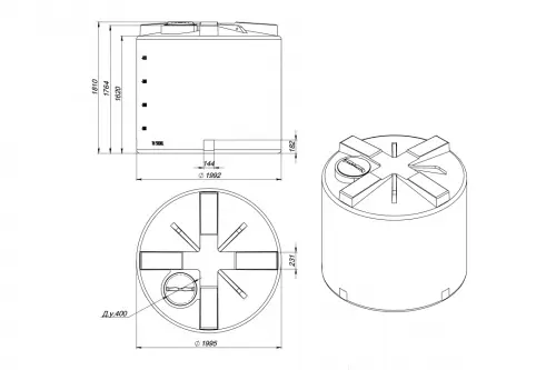 Крупногабаритная вертикальная бочка ТH 5000л имеет меньшую высоту и большую ширину по сравнению с емкостью T 5000л.