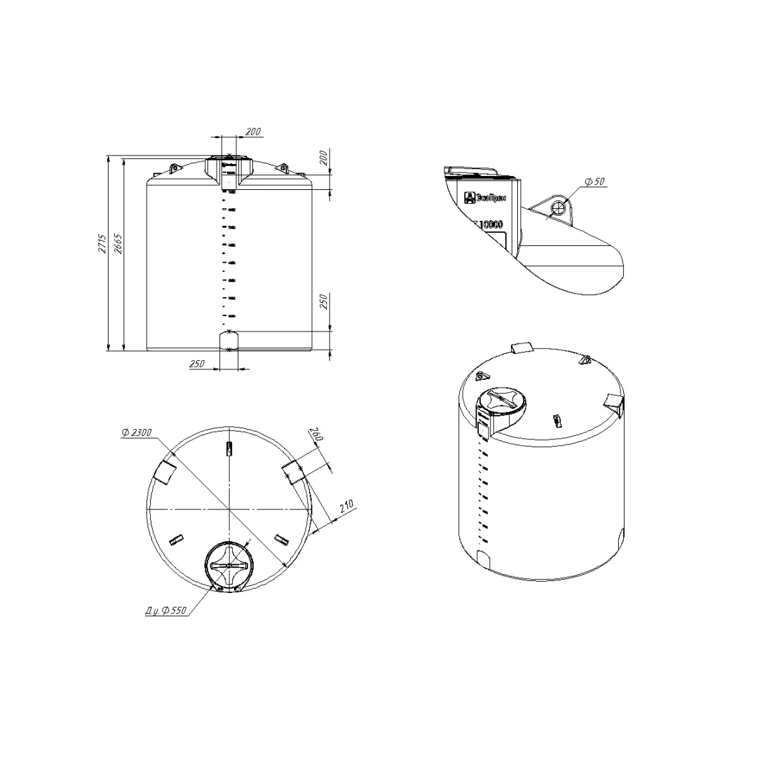 - мерная шкала на корпусе с шагом 500л для отслеживания уровня наполнения;