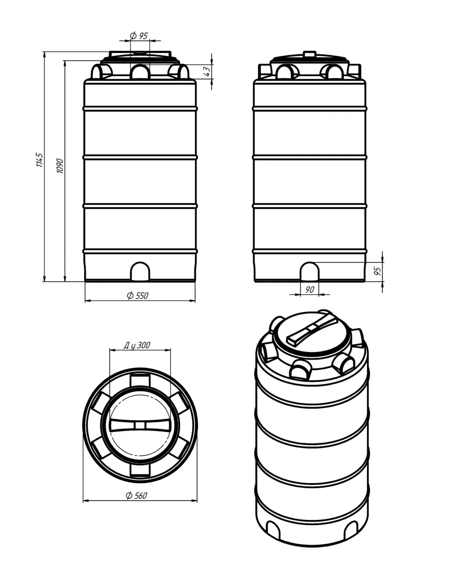 Бочка имеет максимально устойчивую конструкцию и усилена специальными горизонтальными ребрами жесткости.