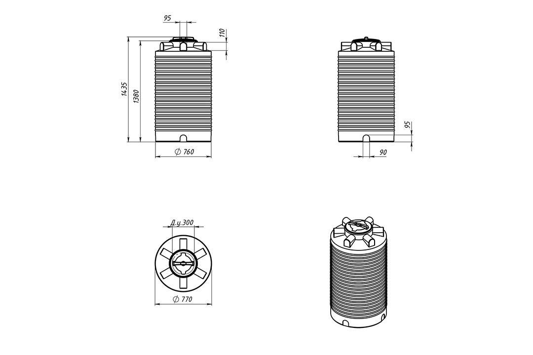 Бочка имеет максимально устойчивую конструкцию и усилена специальными горизонтальными ребрами жесткости.